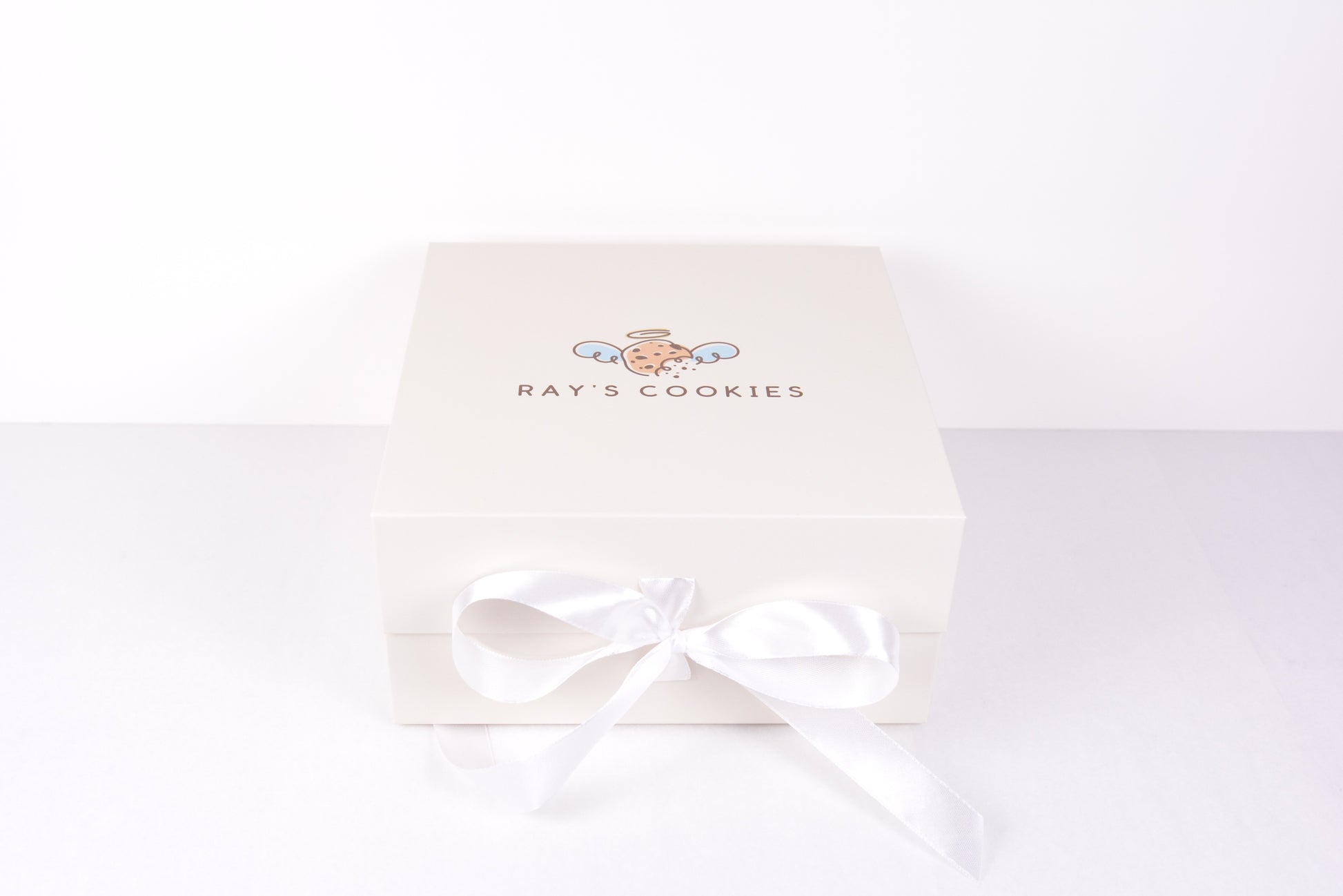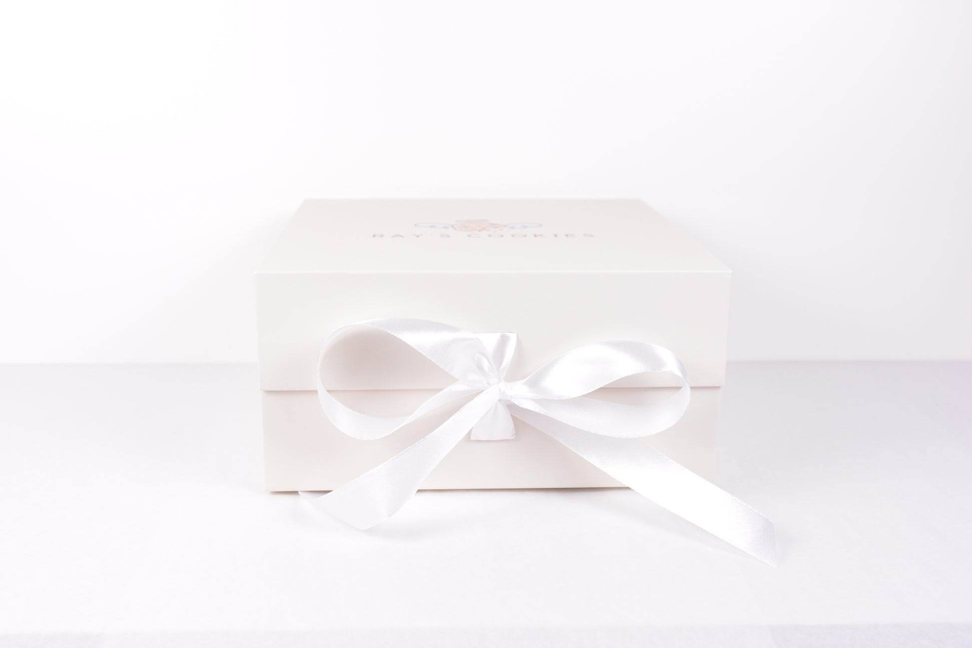 Our beautifully packaged premium cookie gift boxes come with 2 packages of 5 cookies each. Each gift box has a beautiful white bow with a magnetic closure for a premium feel.